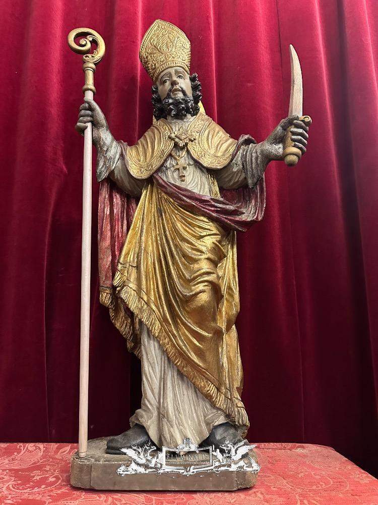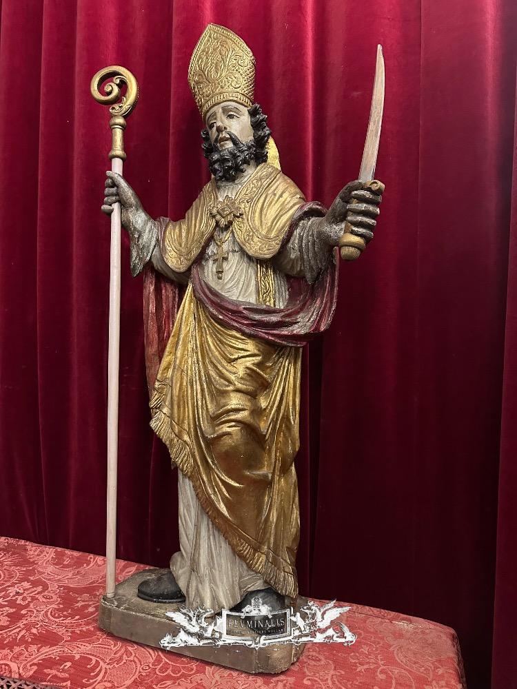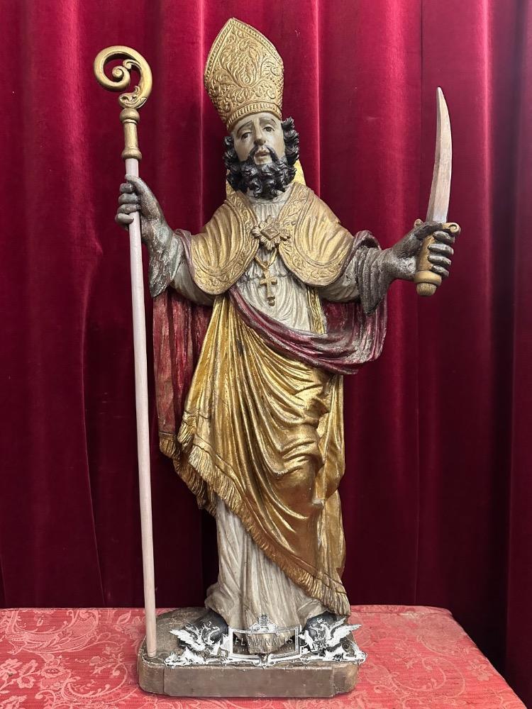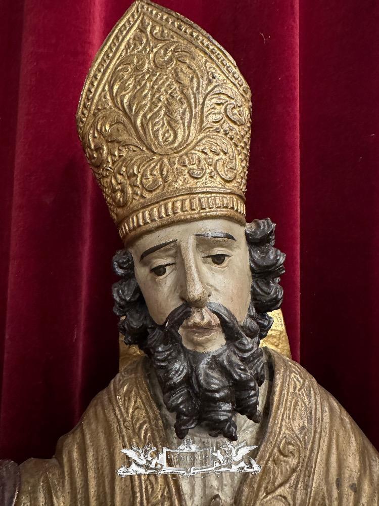 Sculpture St. Bonifatius style Baroque - Style en Hand - Carved Wood , Southern Germany 18 th century