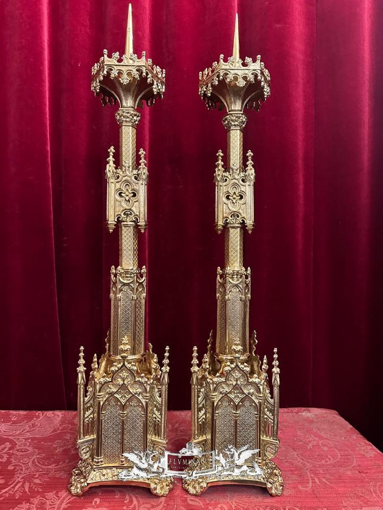 Candle Holders Measures Without Pin style Gothic - Style en Bronze / Polished and Varnished, France 19 th century ( Anno 1885 )