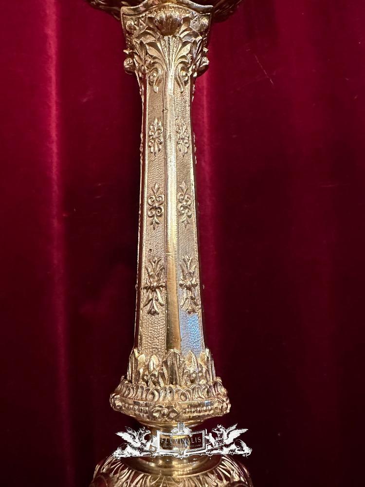 Candle Holders Measures Without Pin style Romanesque - Style en Bronze / Polished and Varnished, France 19 th century ( Anno 1875 )
