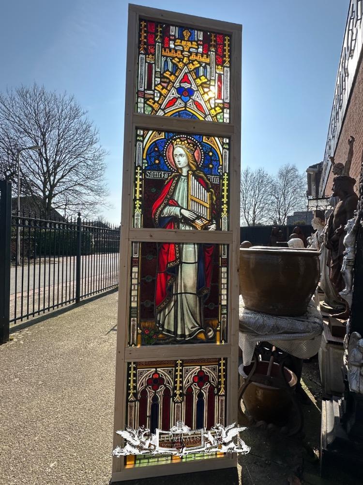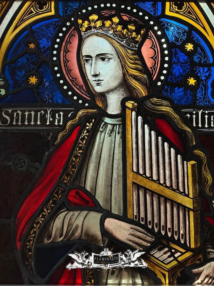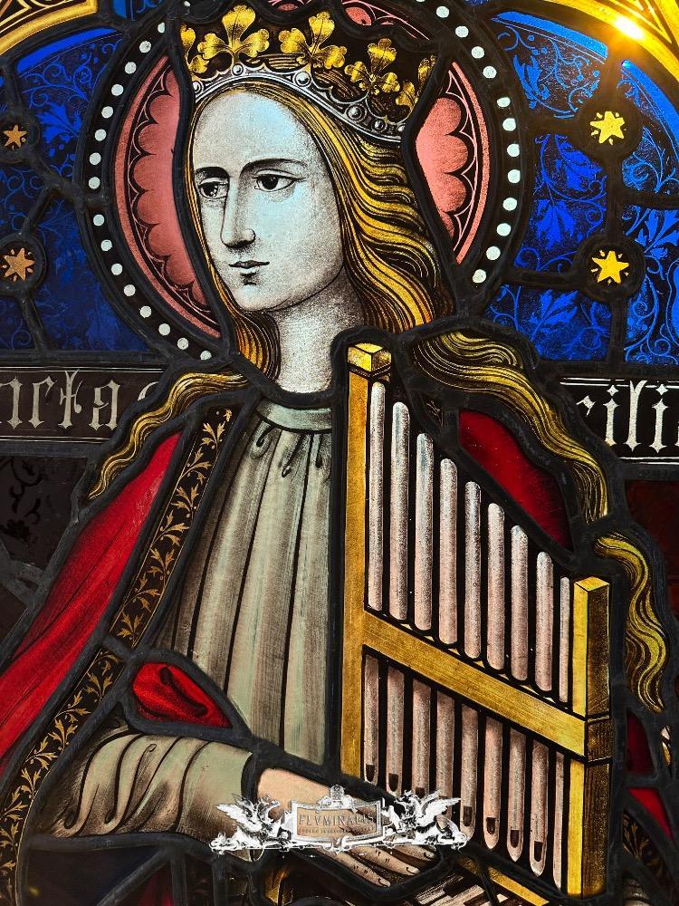 Stained Glass Window St. Cecillia style Gothic - Style en Glass, Belgium 19 th century ( Anno 1865 )