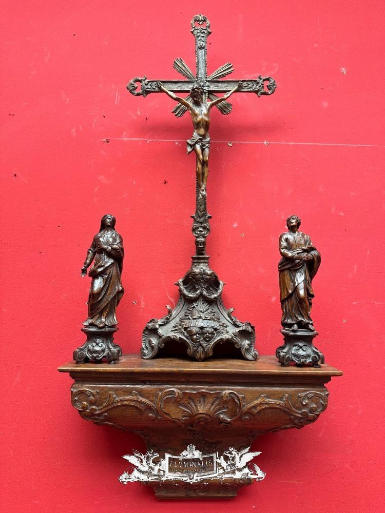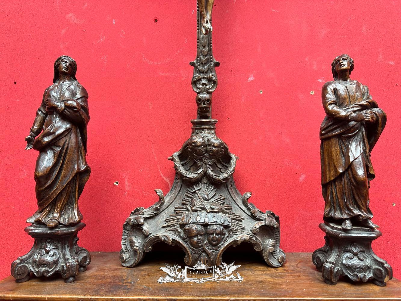 Calvary Scene en Hand - Carved Wood ,