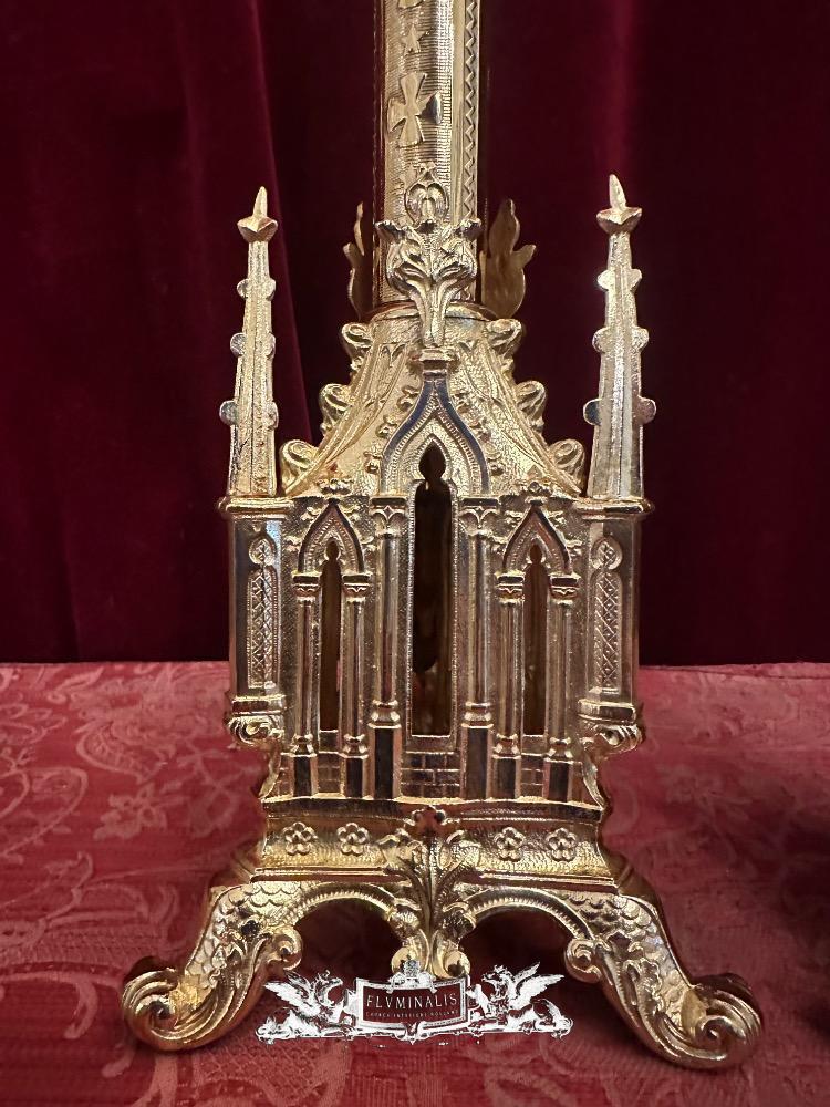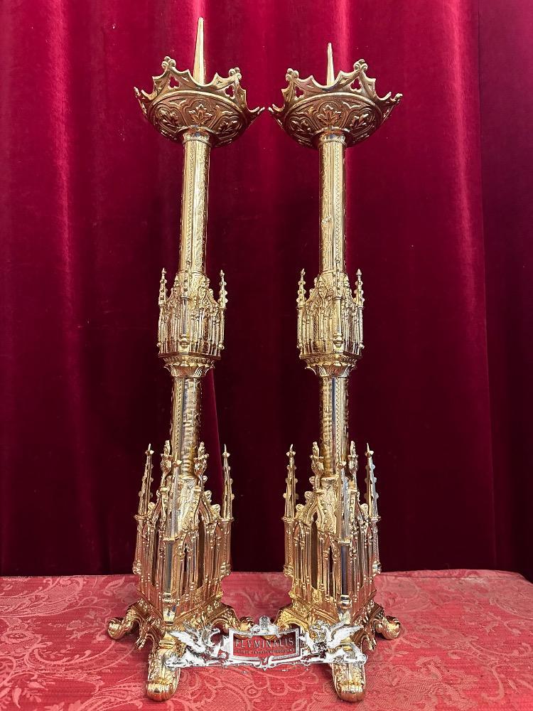 Candle Holders Measures Without Pin style Gothic - Style en Bronze / Polished and Varnished, France 19 th century ( Anno 1885 )