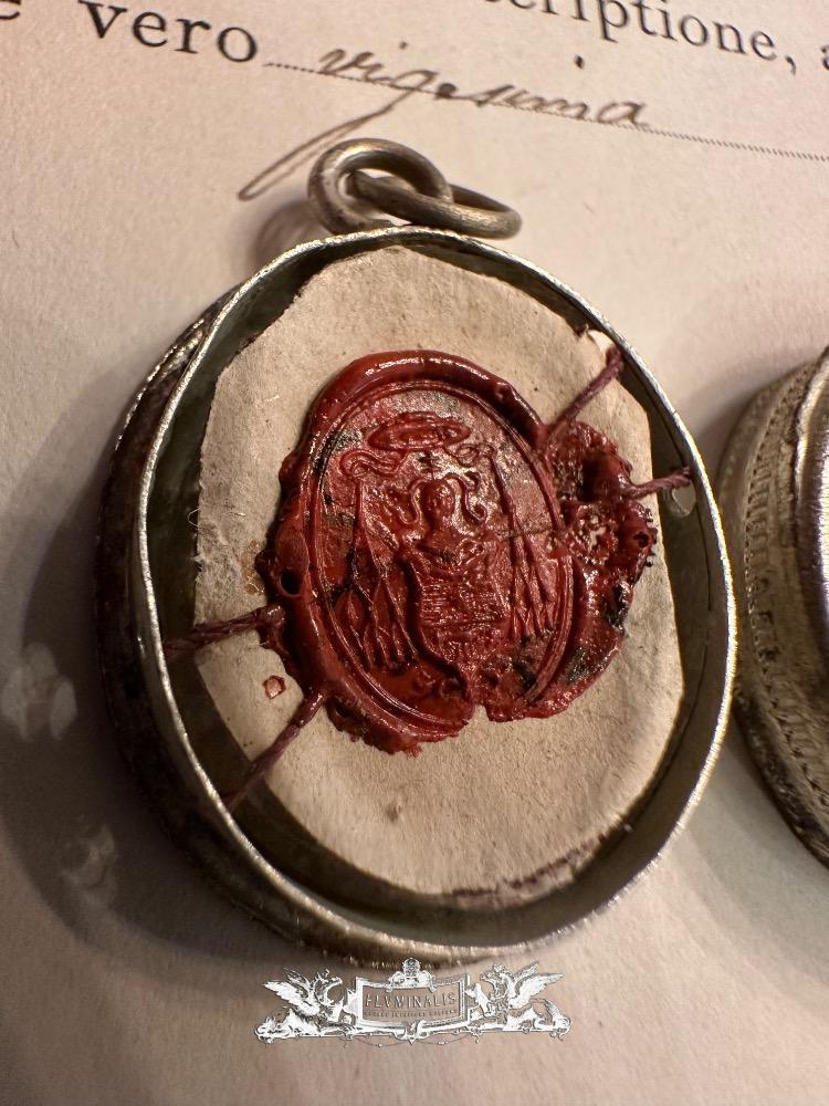 Reliquary - Relic Ex Ossibus St. Mattheus Apostle With Original Document en Silver / Glass / Originally Sealed, France 20 th century ( Anno 1914 )