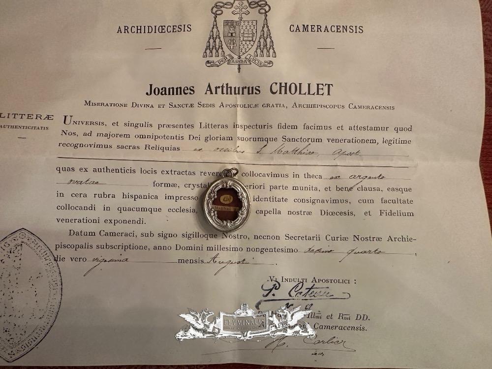 1 Reliquary - Relic Ex Ossibus St. Mattheus Apostle With Original Document