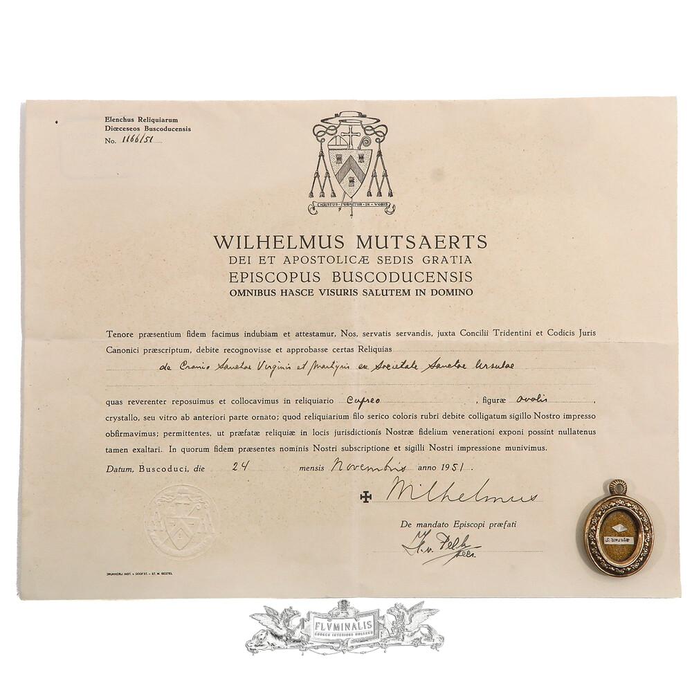 1 Reliquary - Relic Ex Ossibus Saint Urusula, Virgin And Martyr (Patron Saint Of Cologne) With Original Document