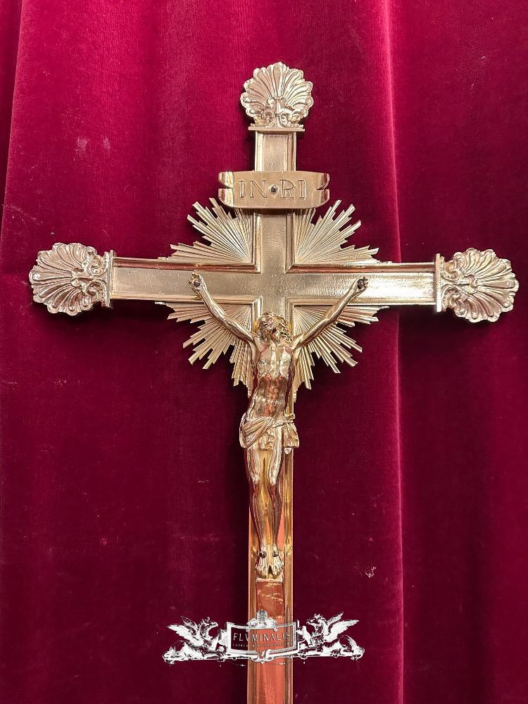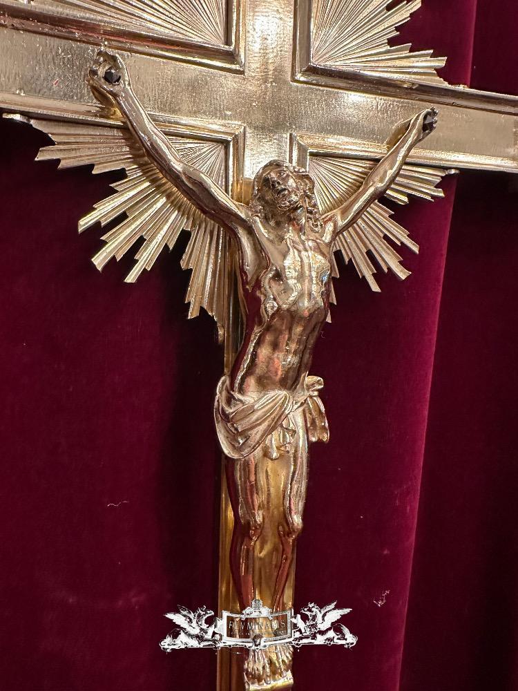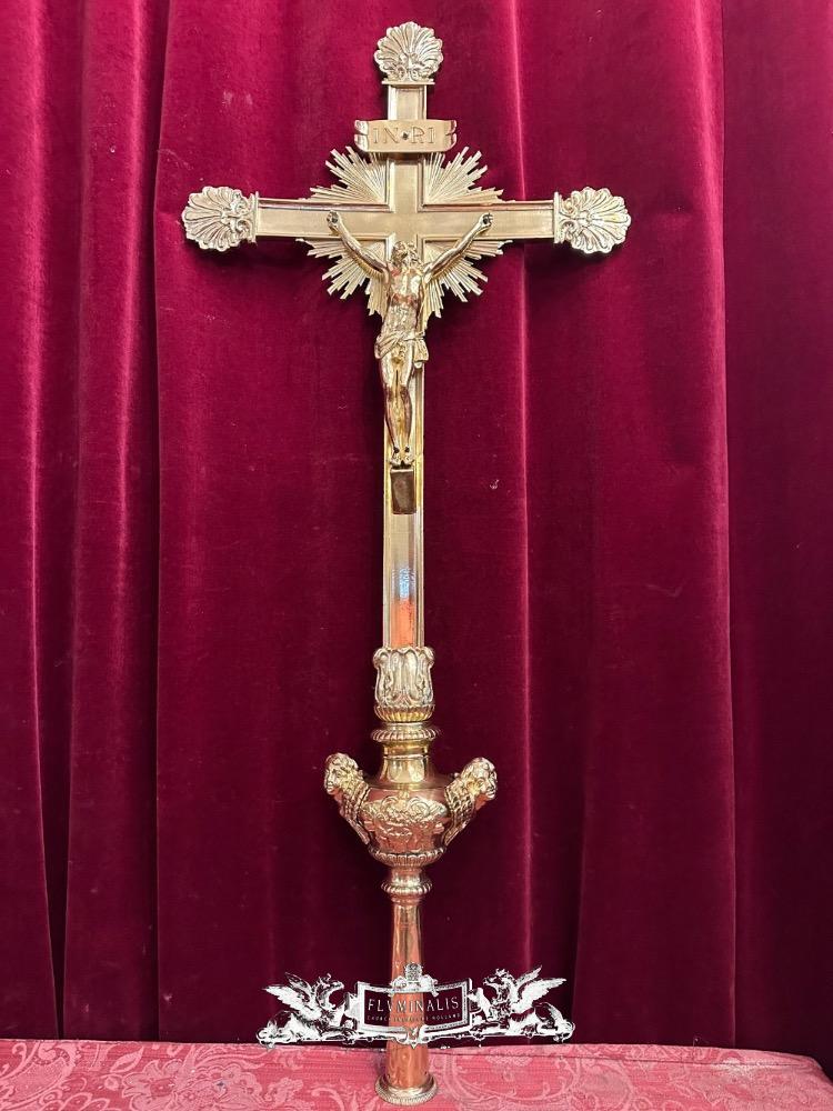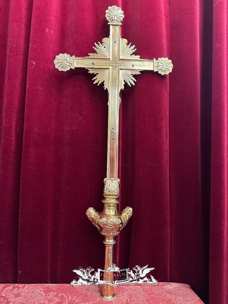 Exceptional Processional Cross style Baroque - Style en Bronze / Polished and Varnished, France 19 th century ( Anno 1851 )