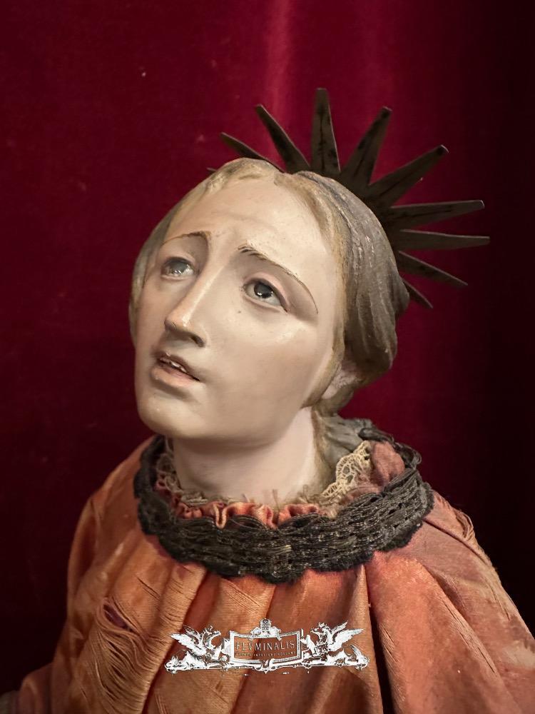 Sculpture style Classical - Style en Wood / Fabrics / Glass Eyes, Italy 19 th century ( Anno 1880 )