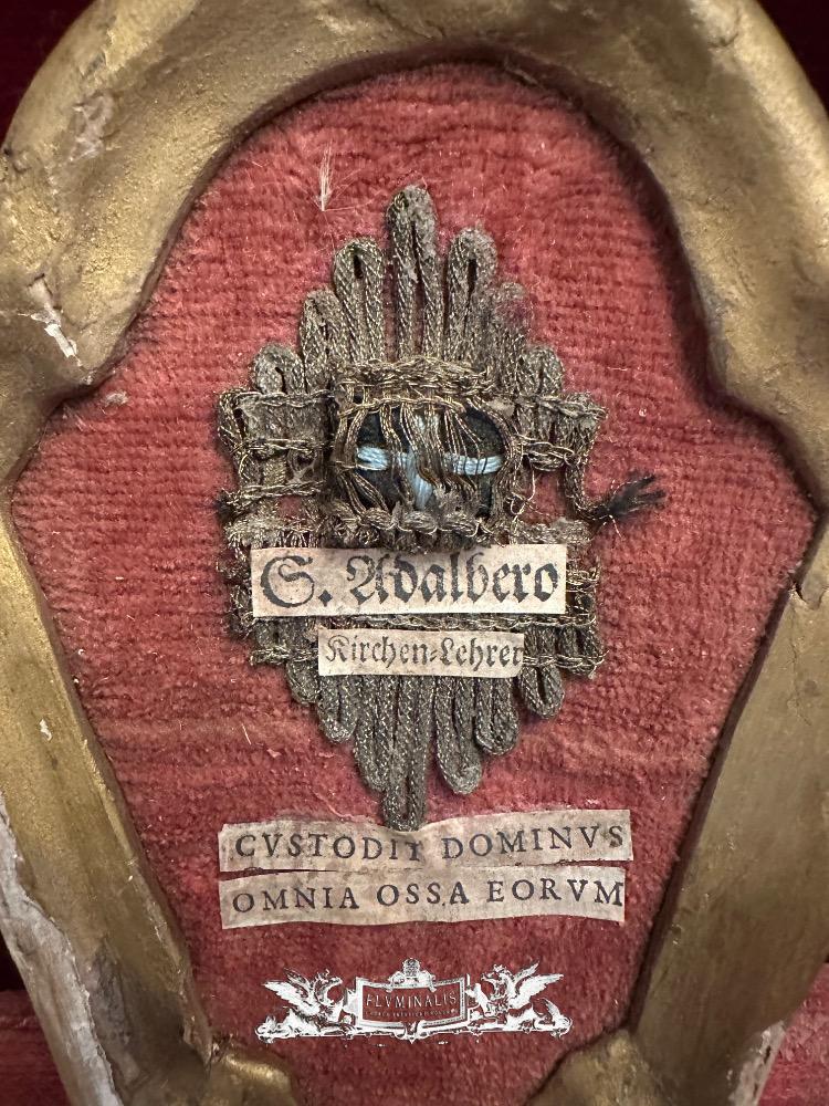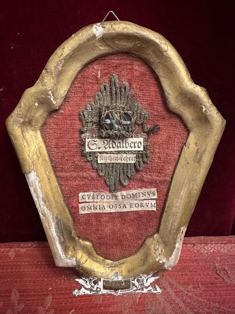 Ex Ossibus Relic Of St. Adalbero Of WüRzburg - Germany. Text : The Lord Quards All Their Bones. en Wood / Fabrics /Brocade & Cedulae / Stones, Germany 18 th century ( Anno 1775 )