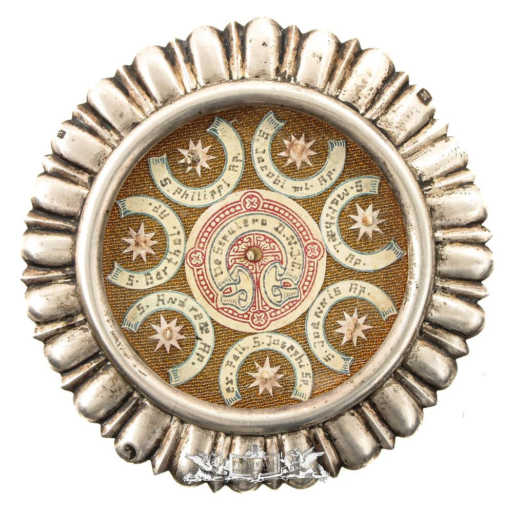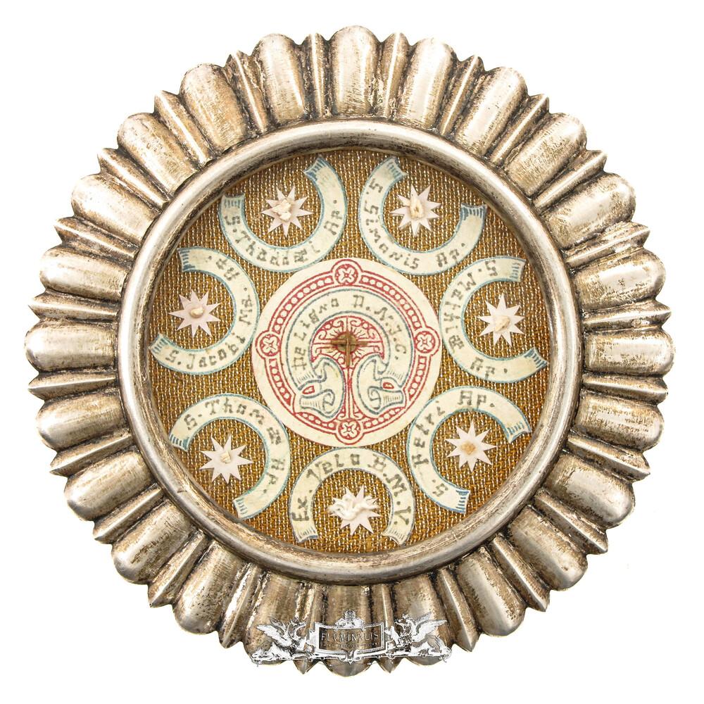 Reliquary - Relics 12 Apostles & Relic Of The True Cross / Ex Velo Bmv / Ex Pallio St. Joseph en Silver / Glass / Originally Sealed, Belgium 19 th century
