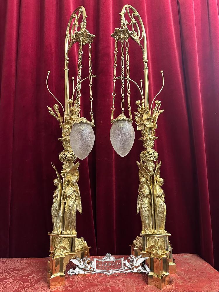 Exceptional Standing Sanctuary Lamps style Gothic - Style en Bronze / Polished and Varnished, France 19 th century ( Anno 1865 )