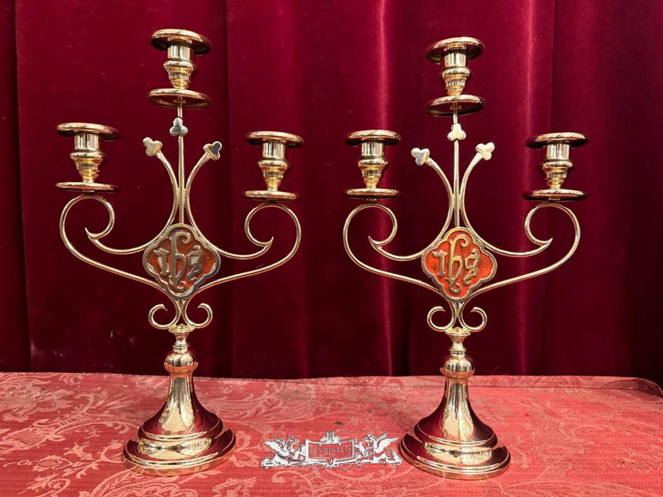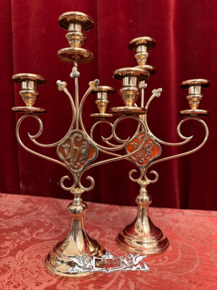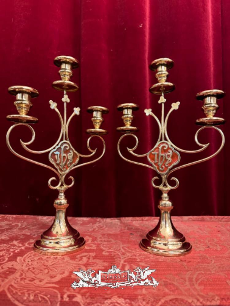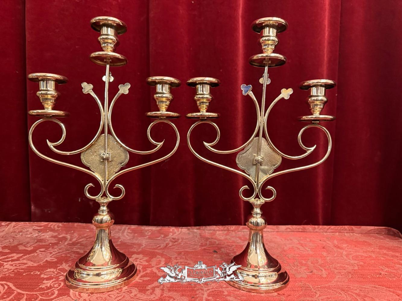 Candle Holders en Brass / Bronze / Polished and Varnished, Belgium 19 th century ( Anno 1885 )