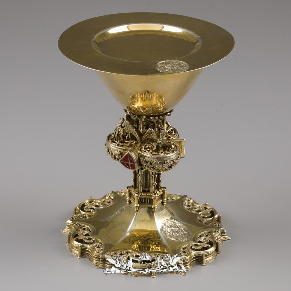 BY AUGUST WITTE, AACHEN - GERMANY. COAT OF ARMS OF VATICAN CITY. THIS CHALICE DID BELONG TO THE CHURCH HISTORIAN DOCTOR ALPHONS BELLESHEIM. PRIEST IN THE VATICAN AND VICAR IN COLOGNE.