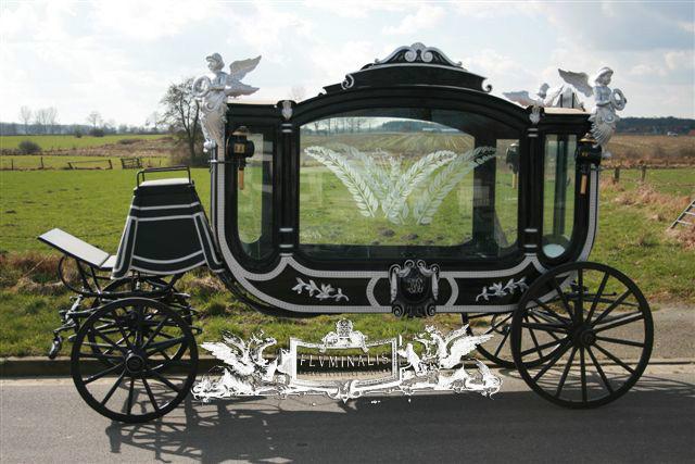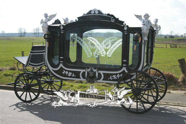 FUNERAL  CARRIAGE , IN ITS ORIGINAL PERFECT CONDITION , FLANKED BY HAND-CARVED WOODEN ANGELS , HUNGARY , ANNO ABOUT  1885