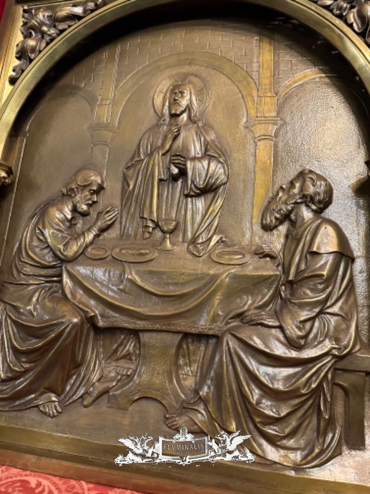 High Quality Altar - Retable Supper In Emmaus style Classicistic en Full Bronze Gilt, Netherlands 19 th century ( Anno 1865 )