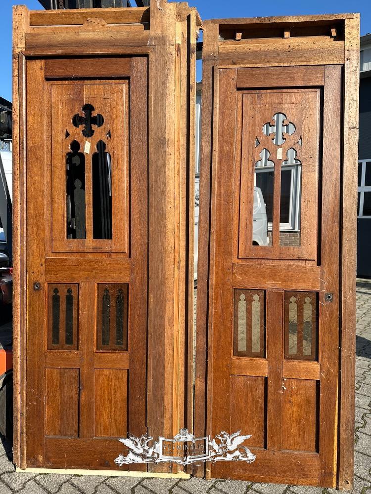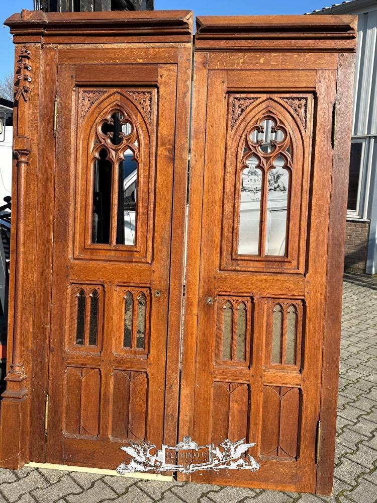 High Quality Confessional Doors style Gothic - Style en Solid - Oak wood, Belgium 19 th century