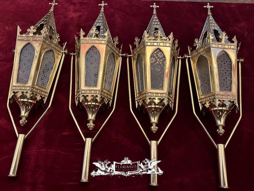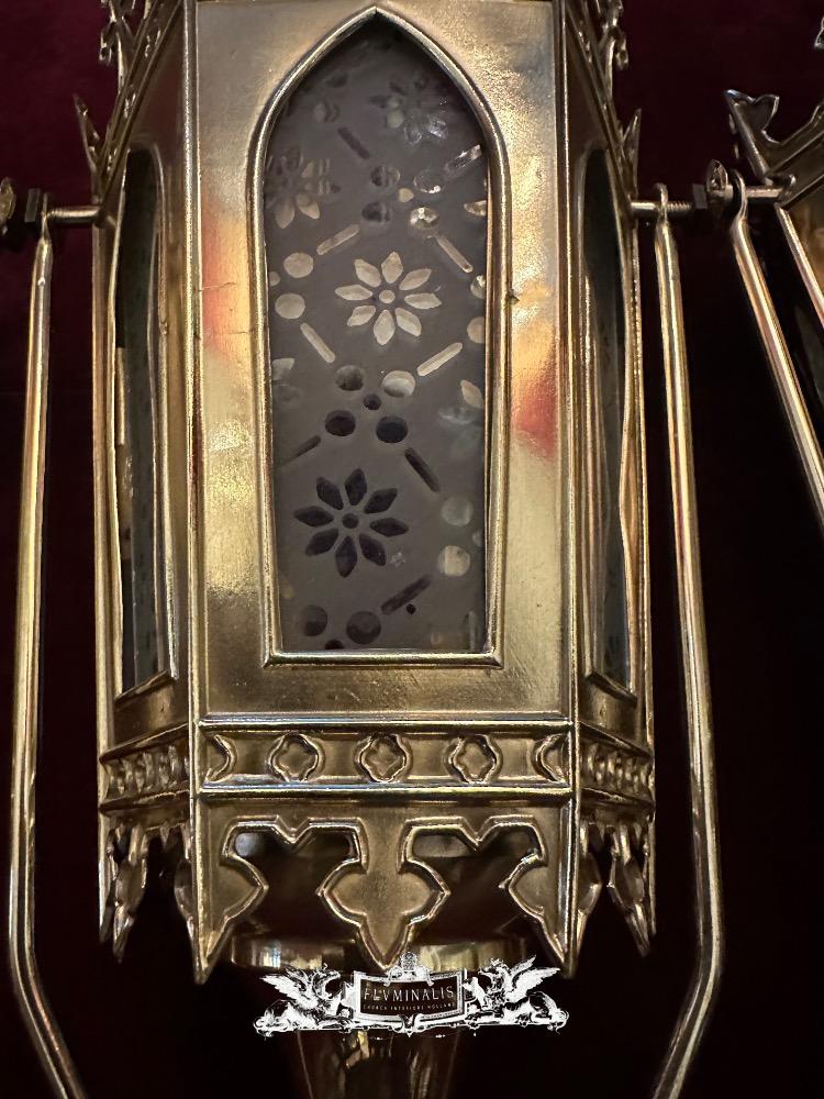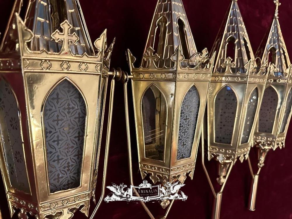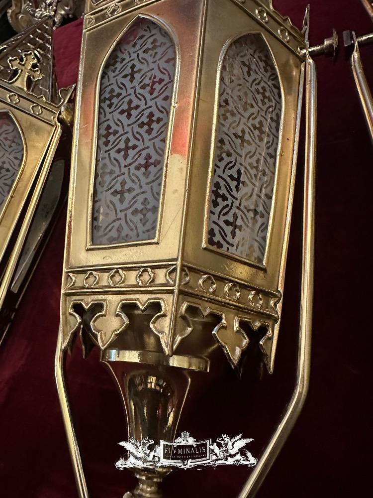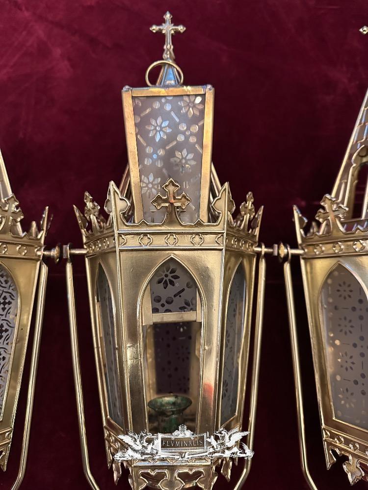 Matching Lanterns style Gothic - Style en Brass / Bronze / Polished and Varnished / Glass, Belgium 19 th century ( Anno 1885 )