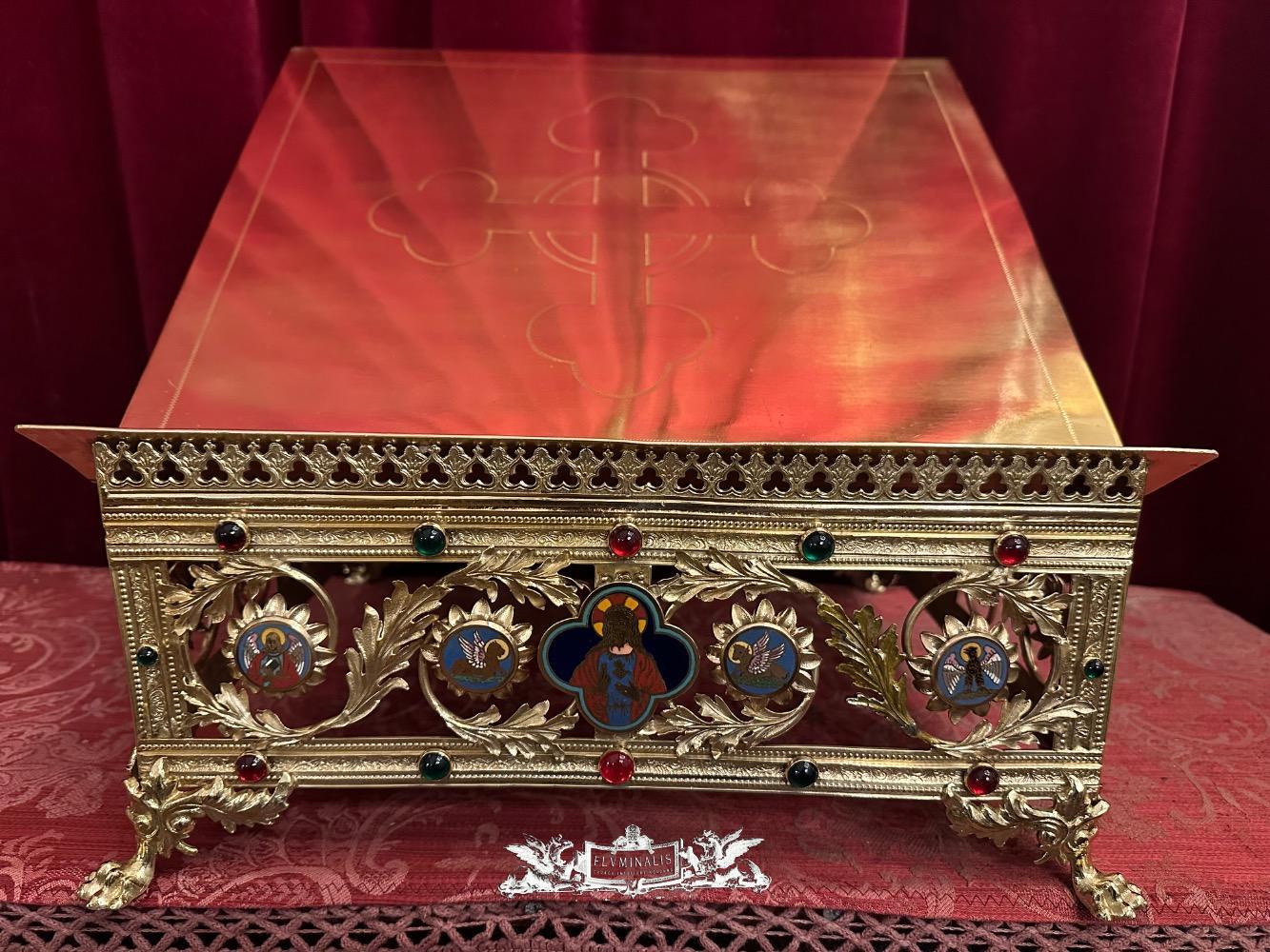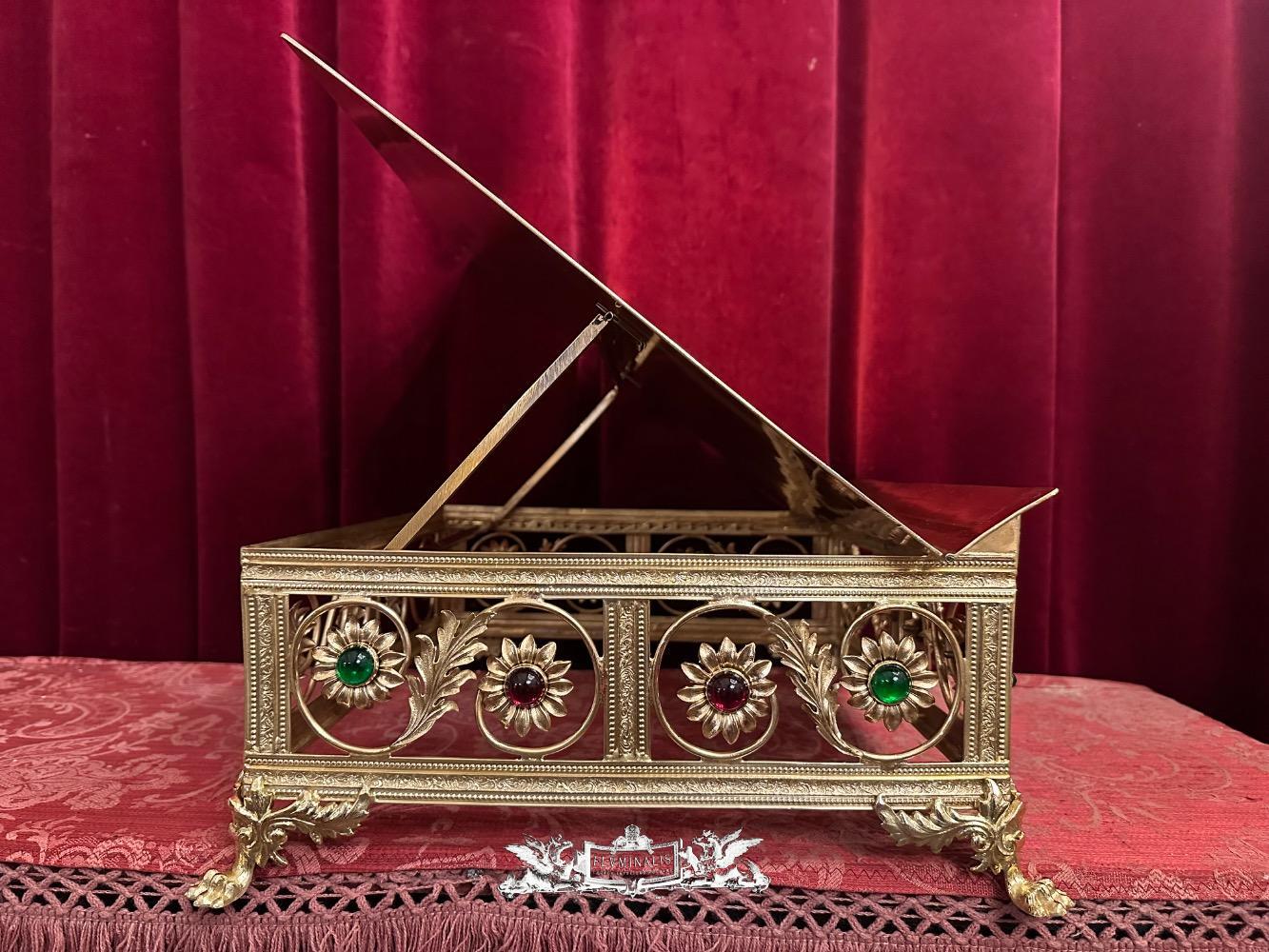 Missal Stand Adustable en Brass / Bronze / Enamel / Stones / Polished and Varnished, France 19 th century ( Anno 1865 )
