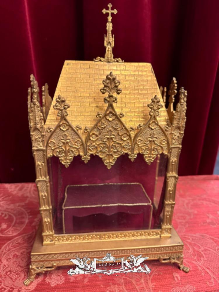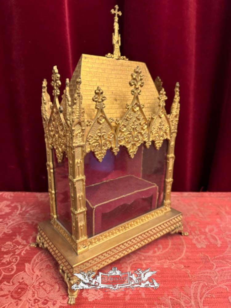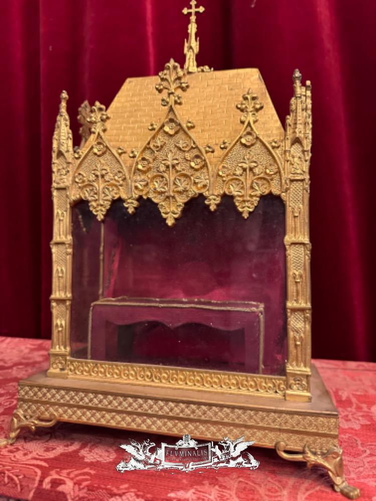 Reliquary - Relic style Gothic - Style en Bronze / Gilt / Glass, France 19 th century ( Anno 1875 )