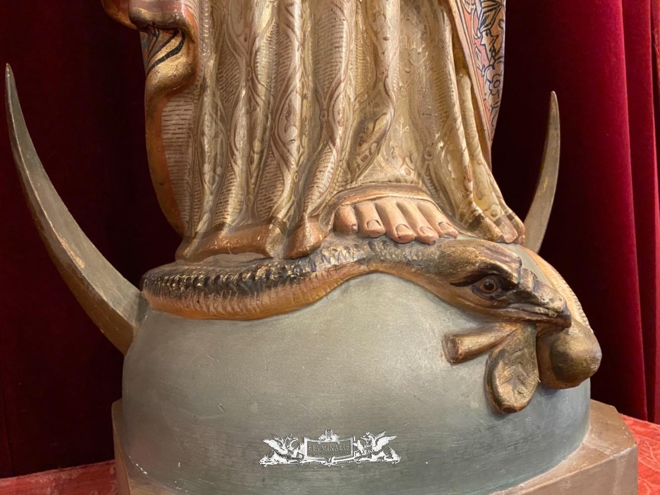 St. Mary Statue style Gothic - style en Plaster polychrome, Belgium 19 th century